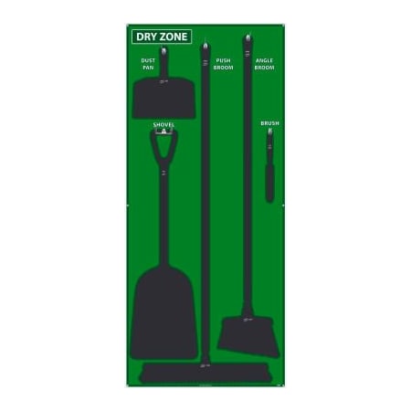 NMC SB136ACP 5S Dry Zone Janitorial Shadow Board, 68"x30", Green/Black, Aluminum Composite Panel (Tools Sold Separately)