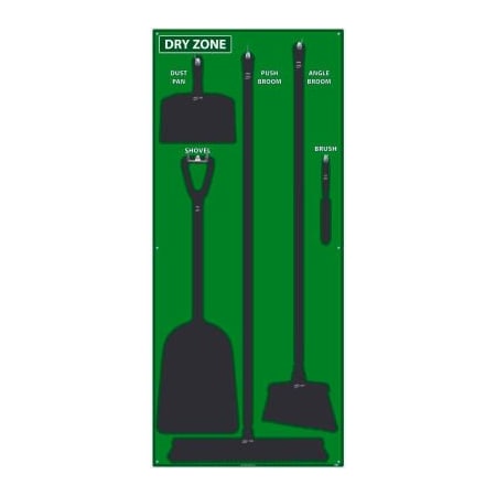 NMC SB136FG 5S Dry Zone Janitorial Shadow Board, 68"x30", Green/Black, Pro Series Acrylic Sign (Tools Sold Separately)