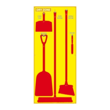 NMC SB138FG 5S Dry Zone Janitorial Shadow Board, 68"x30", Yellow/Red, Pro Series Acrylic Sign (Tools Sold Separately)