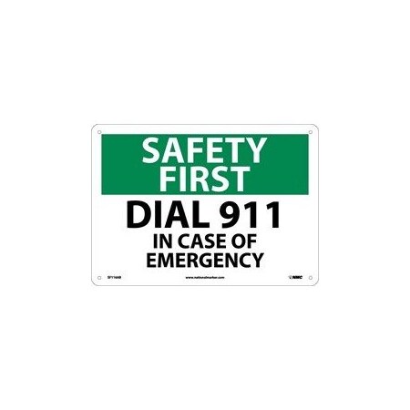 NMC SF116PB OSHA Sign, Legend "SAFETY FIRST - DIAL 911 IN CASE OF EMERGENCY", 14" Length x 10" Height, Pressure Sensitive Vinyl, Black/Green on White