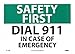 - Header "SAFETY FIRST" and legend "DIAL 911 IN CASE OF EMERGENCY"