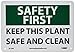 | Feature | Header "SAFETY FIRST" and legend "KEEP THIS PLANT SAFE AND CLEAN" |