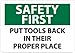 - Header "SAFETY FIRST" and legend "PUT TOOLS BACK IN THEIR PROPER PLACE"