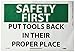NMC SF132PB OSHA Sign, Legend "SAFETY FIRST - PUT TOOLS BACK IN THEIR PROPER PLACE", 14" Length x 10" Height, Pressure Sensitive Vinyl, Black/Green on White
