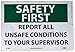 | Feature | Header "SAFETY FIRST" and legend "REPORT ALL UNSAFE CONDITIONS TO YOUR SUPERVISOR" |