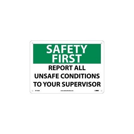 NMC SF133PB SAFETY FIRST – REPORT ALL UNSAFE CONDITIONS TO YOUR SUPERVISOR Sign – 14 in. x 10 in. General Safety Sign with White/Black on Green/White Base