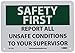 | Feature | Header "SAFETY FIRST" and legend "REPORT ALL UNSAFE CONDITIONS TO YOUR SUPERVISOR" |