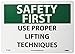 Safety First Use Proper Lifting Techniques Sign, SF134RB