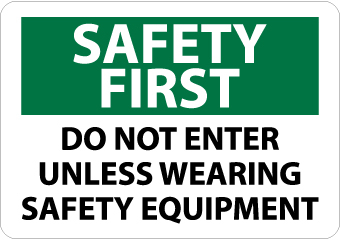 - Safety Signage: this sign clearly states that safety comes first and instructs workers or employees to not enter a workplace unless they are wearing safety equipment. It is mostly used at industrial facilities, and construction sites to enforce safety rules