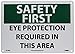 | Feature | Header "SAFETY FIRST" and legend "EYE PROTECTION REQUIRED IN THIS AREA" |