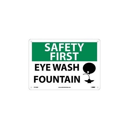 NMC SF160PB OSHA Sign, Legend "SAFETY FIRST - EYE WASH FOUNTAIN" with Graphic, 14" Length x 10" Height, Pressure Sensitive Vinyl, Black/Green on White