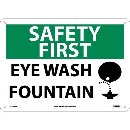 NMC SF160RB OSHA Sign, Legend "SAFETY FIRST - EYE WASH FOUNTAIN" with Graphic, 14" Length x 10" Height, Rigid Plastic, Black/Green on White