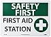 - Header "SAFETY FIRST" and legend "FIRST AID STATION" with graphic