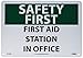 - Header "SAFETY FIRST" and legend "FIRST AID STATION IN OFFICE"