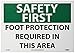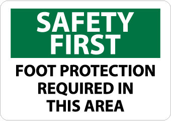 - Visibility: the sign shows the legend “SAFETY FIRST - FOOT PROTECTION REQUIRED IN THIS AREA” in contrasting colors and clear, bold letters to ensure easy visibility in most lighting conditions and even from a distance