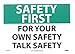 Safety First For Your Own Safety Talk Safety Sign, SF164AB