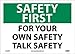 Safety First For Your Own Safety Talk Safety Sign, SF164PB