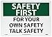 Safety First For Your Own Safety Talk Safety Sign, SF164RB