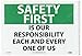 - Header "SAFETY FIRST" and legend "IS OUR RESPONSIBILITY EACH AND EVERY ONE OF US"