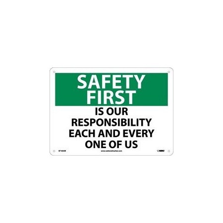 NMC SF165PB OSHA Sign, Legend "SAFETY FIRST - IS OUR RESPONSIBILITY EACH AND EVERY ONE OF US", 14" Length x 10" Height, Pressure Sensitive Vinyl, Black/Green on White