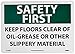 | Feature | Header "SAFETY FIRST" and legend "KEEP FLOORS CLEAR OF OIL-GREASE OR OTHER SLIPPERY MATERIAL" |