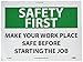 - Header "SAFETY FIRST" and legend "MAKE YOUR WORK PLACE SAFE BEFORE STARTING THE JOB"