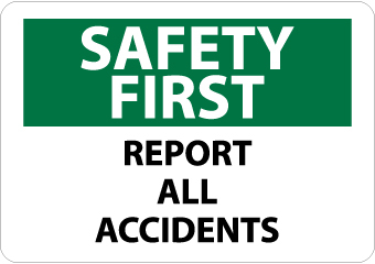 - Visibility: the sign shows the legend “SAFETY FIRST - REPORT ALL ACCIDENTS” in contrasting colors and clear, bold letters to ensure easy visibility in most lighting conditions and even from a distance