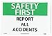 NMC SF170PB OSHA Sign, Legend "SAFETY FIRST - REPORT ALL ACCIDENTS", 14" Length x 10" Height, Pressure Sensitive Vinyl, Black/Green on White
