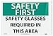 | Feature | Header "SAFETY FIRST" and legend "SAFETY GLASSES REQUIRED IN THIS AREA" |