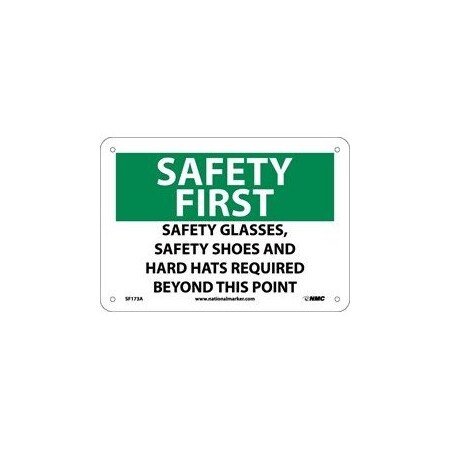 NMC SF173RB SAFETY FIRST - SAFETY GLASSES, SAFETY SHOES AND HARD HATS REQUIRED BEYOND THIS POINT Sign – 14 in. x 10 in. Rigid Plastic PPE Sign