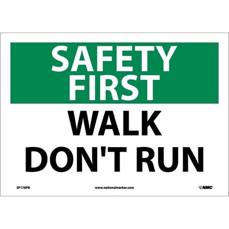 NMC SF176PB OSHA Sign, Legend "SAFETY FIRST - WALK DON'T RUN", 14" Length x 10" Height, Pressure Sensitive Vinyl, Black/Green on White