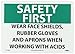 | Feature | Header "SAFETY FIRST" and legend "WEAR FACE SHIELDS, RUBBER GLOVES AND APRONS WHEN WORKING WITH ACIDS" |
