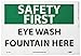 | Feature | Header "SAFETY FIRST" and legend "EYE WASH FOUNTAIN HERE" |