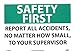 Safety First Report All Accidents Sign, SF180AB
