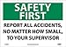 | Feature | Header "SAFETY FIRST" and legend "REPORT ALL ACCIDENTS, NO MATTER HOW SMALL, TO YOUR SUPERVISOR" |