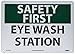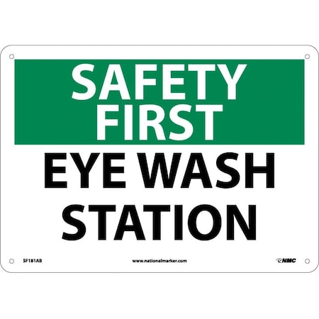 NMC SF181AB OSHA Sign, Legend "SAFETY FIRST - EYE WASH STATION", 14" Length x 10" Height, Aluminum, Black/Green on White