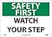 | Feature | Header "SAFETY FIRST" and legend "WATCH YOUR STEP" |