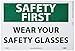 | Feature | Header "SAFETY FIRST" and legend "WEAR YOUR SAFETY GLASSES" |