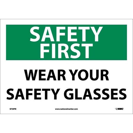 NMC SF39PB SAFETY FIRST - WEAR YOUR SAFETY GLASSES Sign – 14 in. x 10 in. PS Vinyl Personal Protection Sign with White/Black Text on Green/White Base