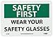 | Feature | Header "SAFETY FIRST" and legend "WEAR YOUR SAFETY GLASSES" |