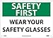 | Feature | Header "SAFETY FIRST" and legend "WEAR YOUR SAFETY GLASSES" |