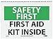 - Header "SAFETY FIRST" and legend "FIRST AID KIT INSIDE"