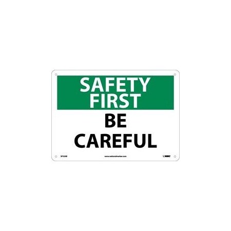 NMC SF52P OSHA Sign, Legend "SAFETY FIRST - BE CAREFUL", 10" Length x 7" Height, Pressure Sensitive Vinyl, Black/Green on White