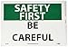 NMC SF52PB OSHA Sign, Legend "SAFETY FIRST - BE CAREFUL", 14" Length x 10" Height, Pressure Sensitive Vinyl, Black/Green on White