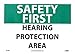 NMC SF53RB OSHA Sign, Legend "SAFETY FIRST - HEARING PROTECTION AREA", 14" Length x 10" Height, Rigid Plastic, Black/Green on White
