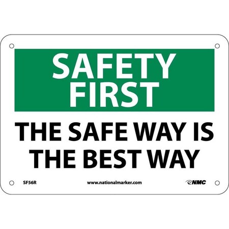 NMC SF56PB OSHA Sign, Legend "SAFETY FIRST - THE SAFE WAY IS THE BEST WAY", 14" Length x 10" Height, Pressure Sensitive Vinyl, Black/Green on White