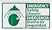 | Feature | Header "EMERGENCY" and legend "Safety shower" with graphic |