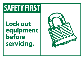 Safety First Lock Out Equipment Before Servicing Label, Pk5