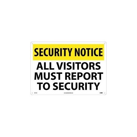 NMC - National Marker Company Security Notice, All Visitors Must Report To Security, 14X20, .040 Alum Security Signs Alert visitors of important security policies.
