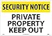 | Feature | Header "SECURITY NOTICE" and legend "PRIVATE PROPERTY KEEP OUT" |